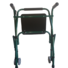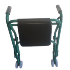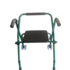 Andador con ruedas; cuenta con un sistema de altura regulable y un asiento para descanso. Es cómoda, liguera y puede doblarse para  guardarla.