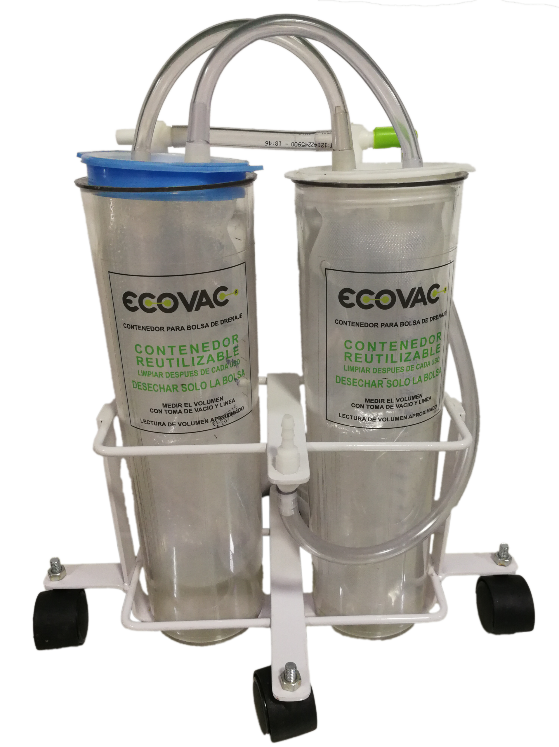Soporte rodante para la colocación de dos canister en serie, lo que hace un volumen de 4 lts. de aspiración.
